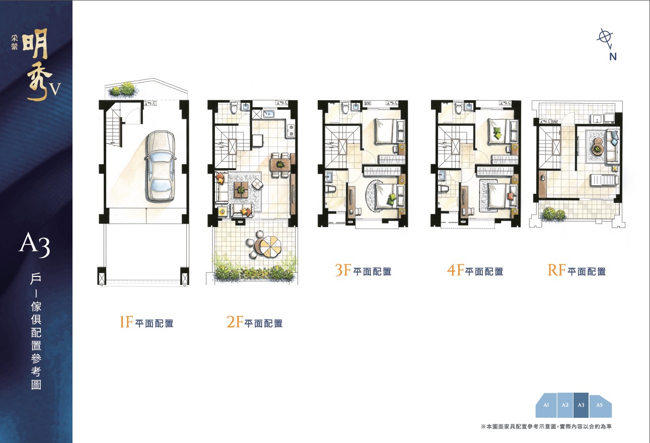 樓層規劃為5層樓透天,共有4戶住家。